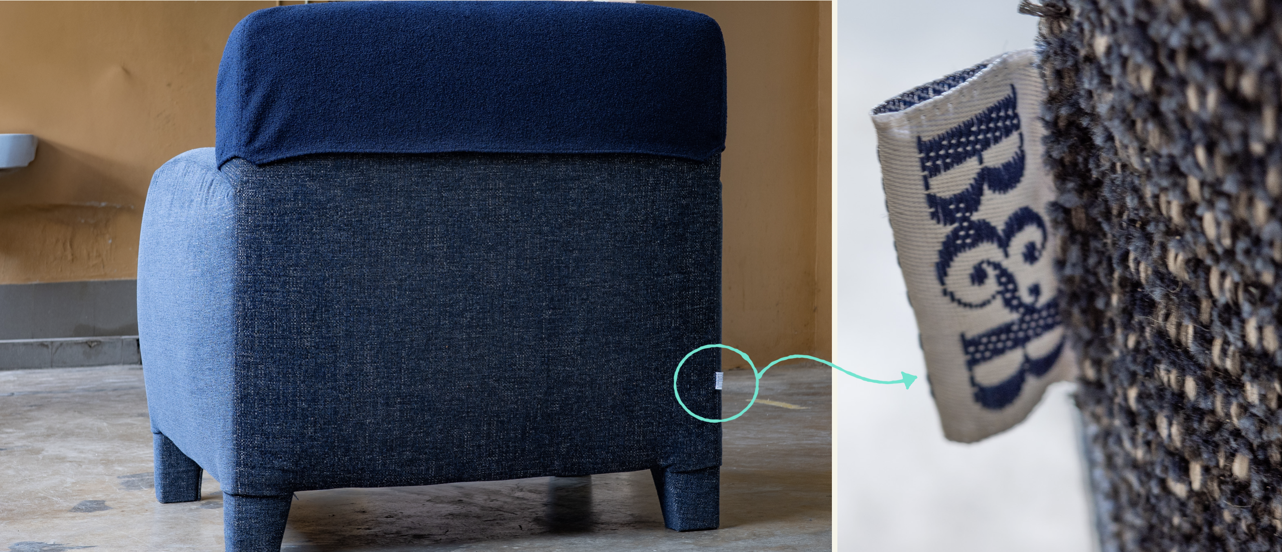 The client wished to maintain the blue hue. So we assisted her in selecting a textured, high-performance, low-maintenance dark blue upholstery for the main chair and a high-performance blue boucle for the back cushion cover. Our goal was to ensure the new upholstery would last as long as the original.