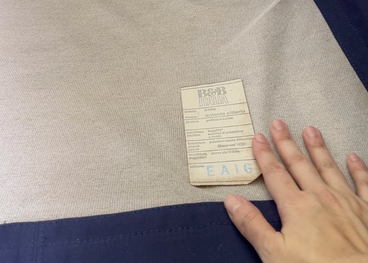 B&B Italia's craftsmanship was evident: neat, clean stitching on the slipcovers that extended all the way down to the legs. Beneath the covers, the seat featured a dacron wrap finish and an extra foam layer on top, giving it a full rounded appearance.