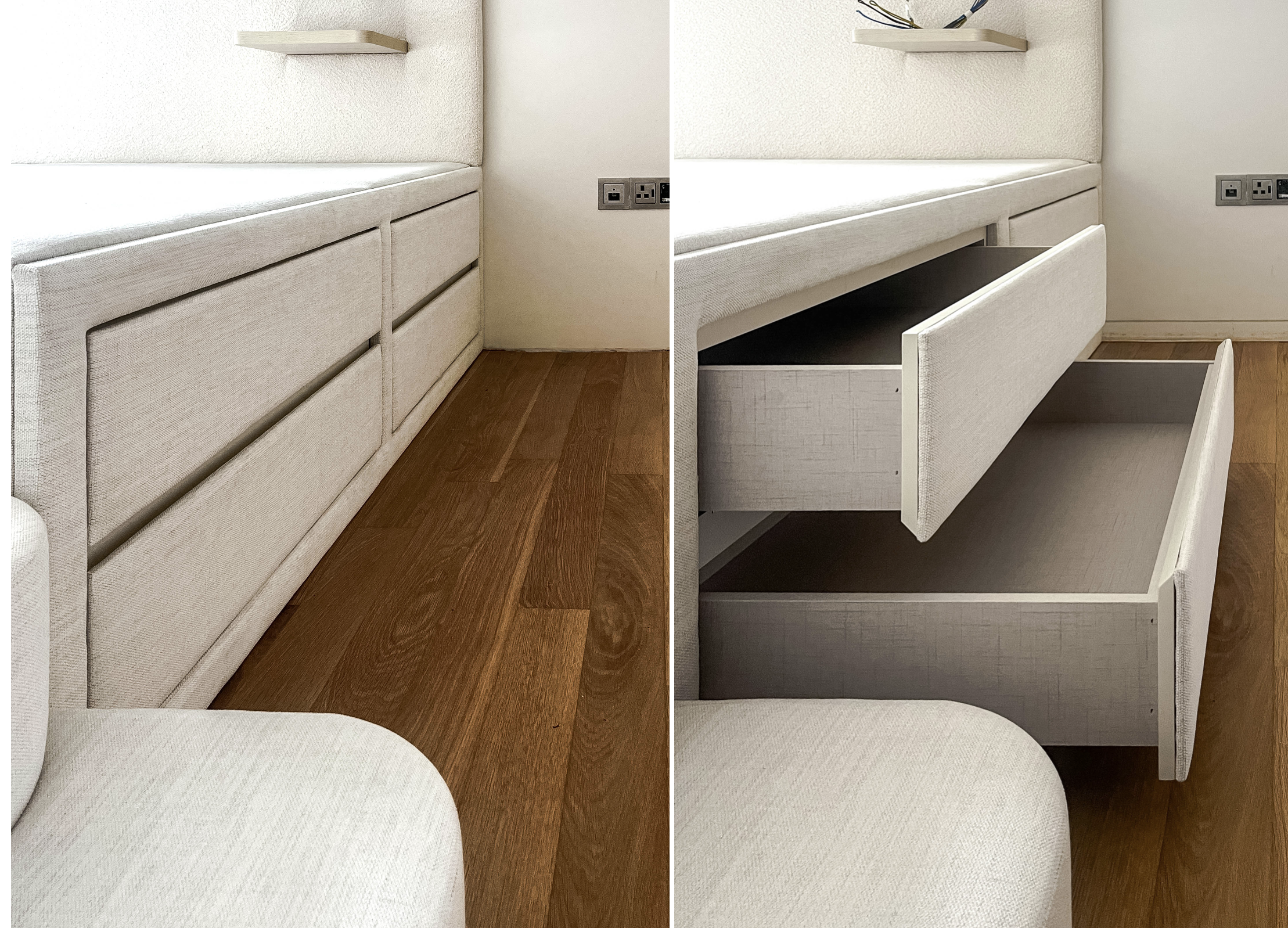 But add to that, the request for a fully upholstered carpentry in white fabric, and we were officially intrigued... and mildly alarmed. But hey, who doesn’t love a good design challenge?