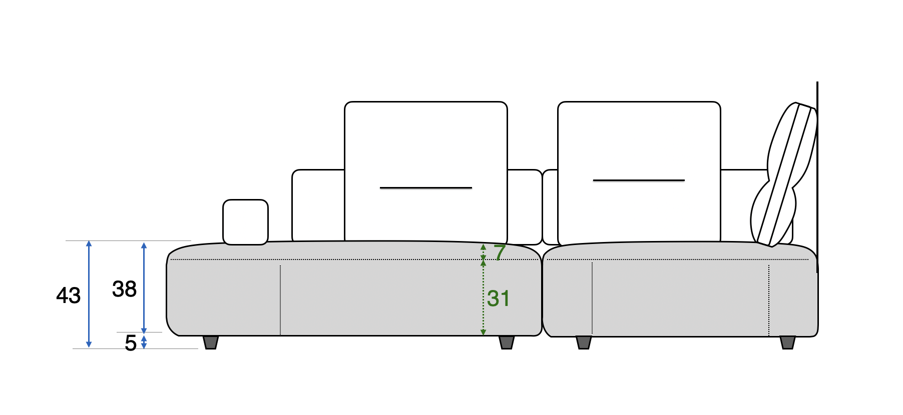 The final seat height was set at 43cm comfortable enough for lounging but not too low for older users who may find it hard to stand up. The new sofa also extends 40cm longer than the previous daybed, comfortably seating two people without crowding the space.