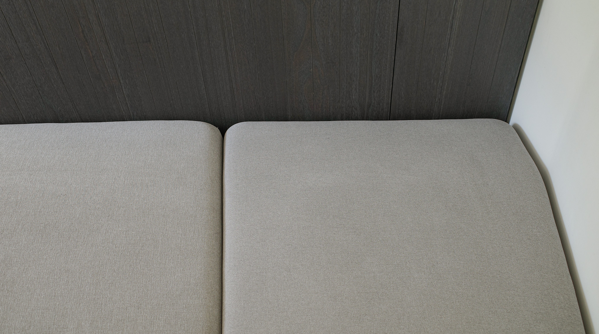 We also made extra back cushions that our client can use to lean against an adjacent wall, expanding how the client uses the space without committing to a bulky fixed frame.