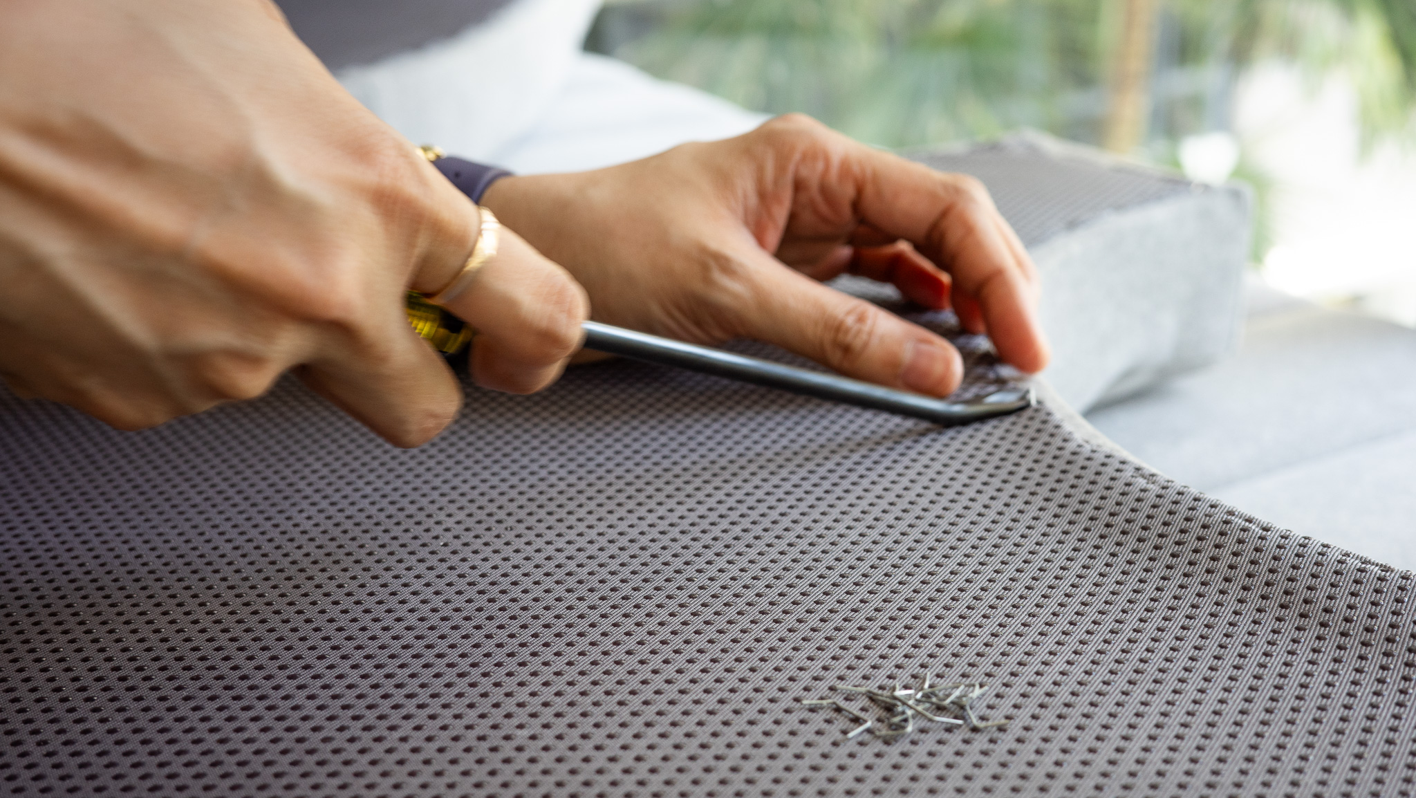 With an L-shaped cushion of this scale, delivering it in a single piece wasn’t an option. The initial plan was to split it into three sections, but after consulting with our experienced craftsman, we decided on four. This adjustment allowed for easier assembly, particularly around the round pillar.