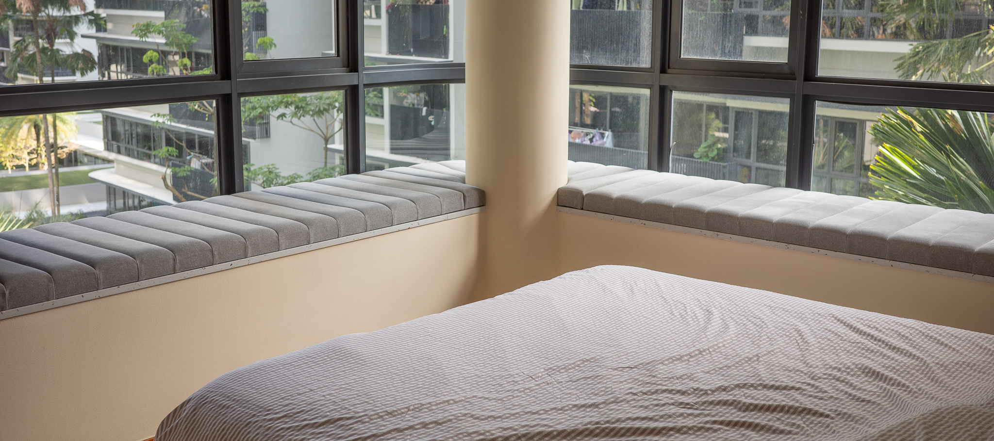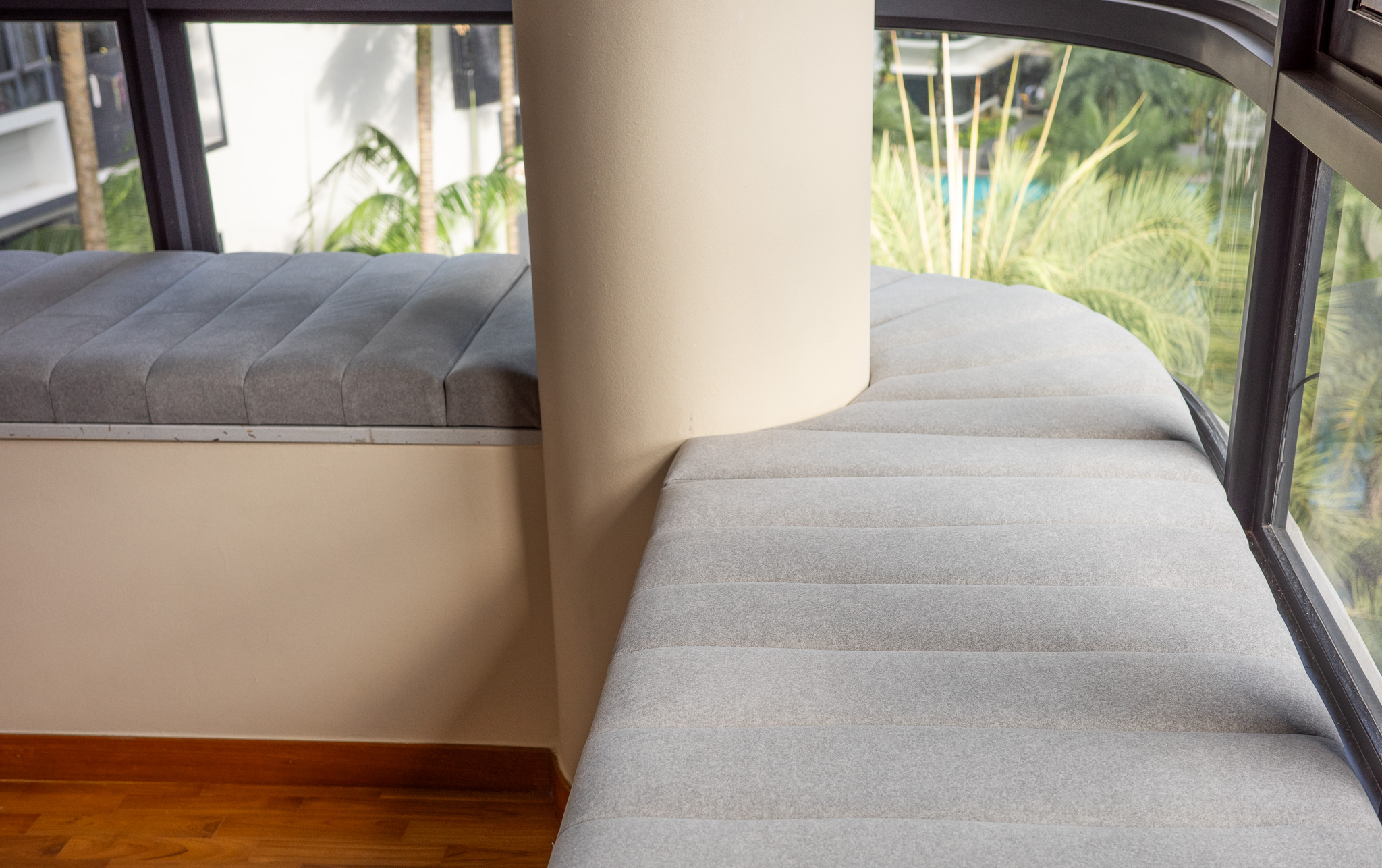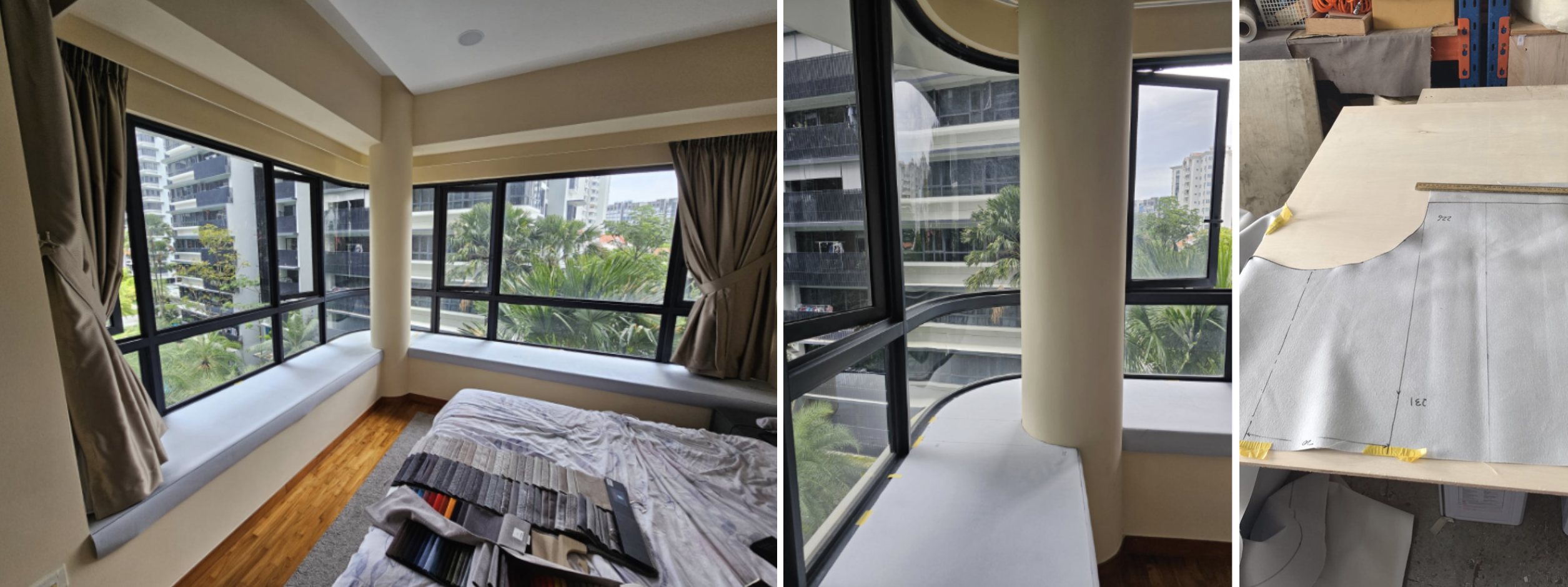 Our client wanted an elegant, channel-stitched cushion for his master bedroom’s bay window. It was a substantial piece, stretching 3.1 meters on one side and 3.4 meters on the other.