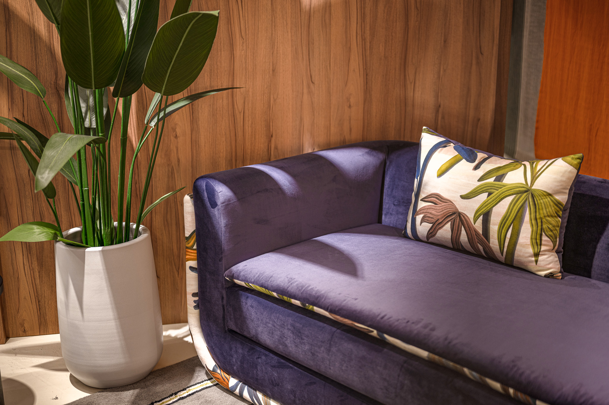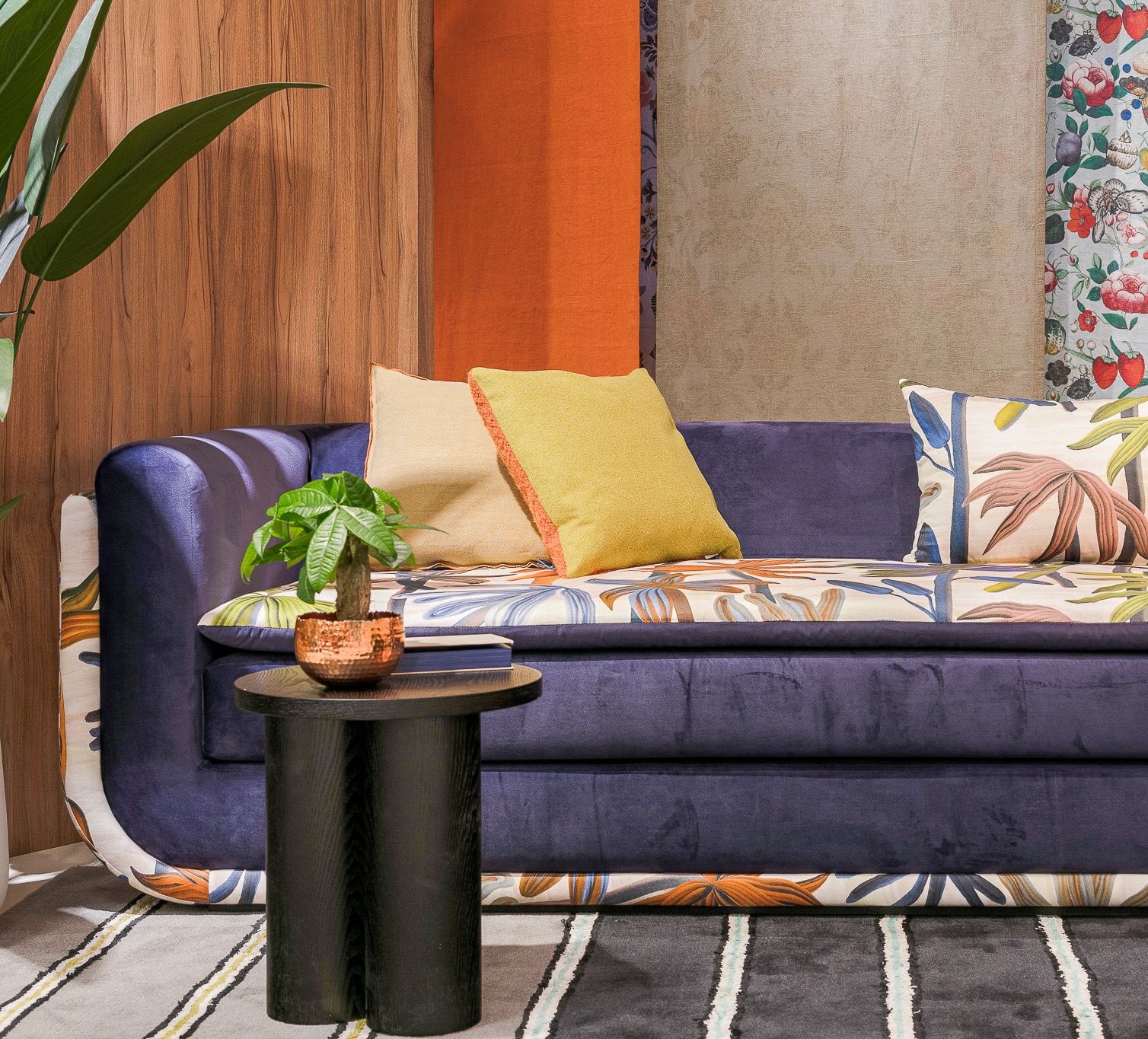 We added a sofa topper to our version. The topper was finished like a pillow and featured two sides - one with the floral print and the other with the aubergine coloured velvet.