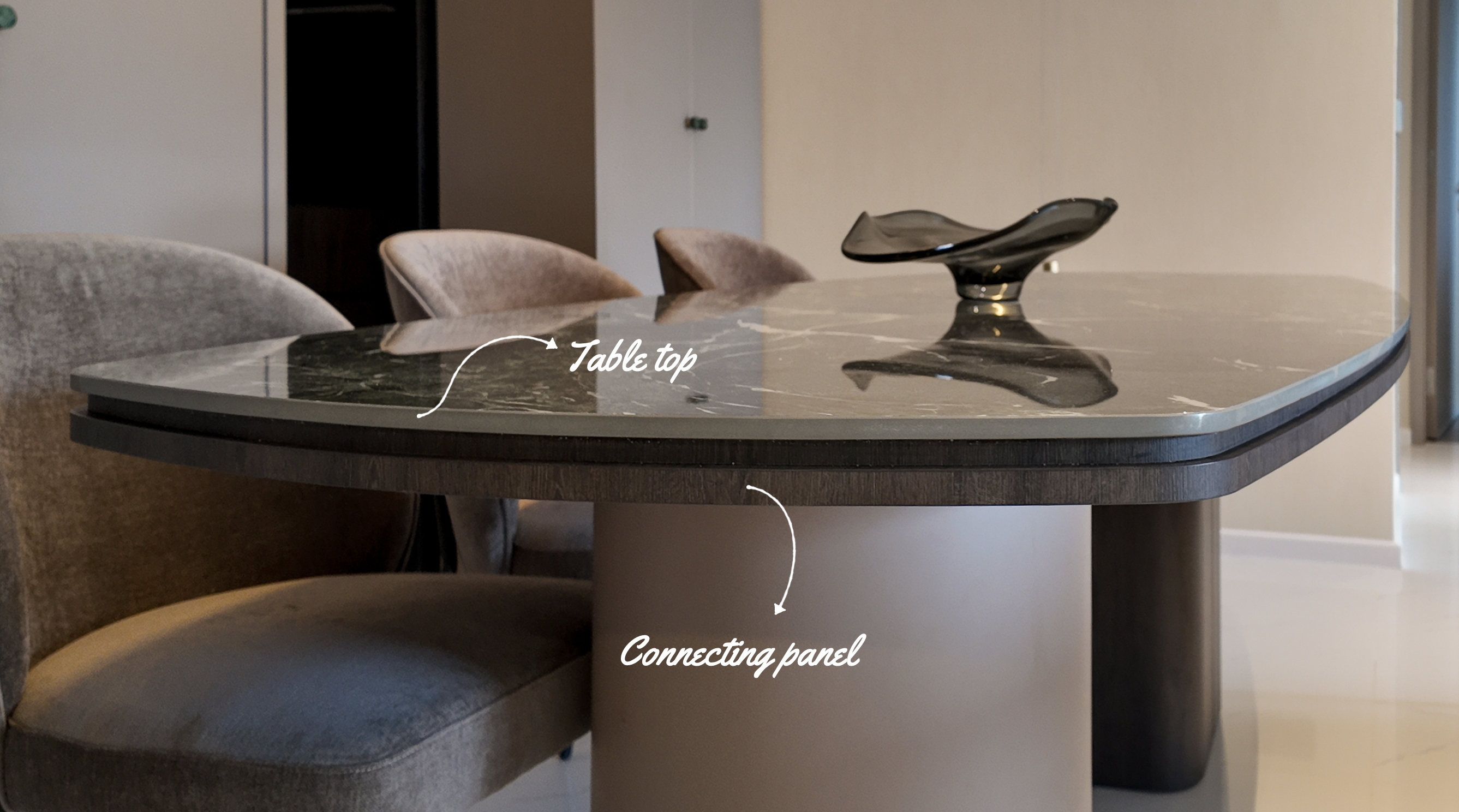Once installed, the table became the focal point of the dining area. Paired with muted bronze velvet chairs, it exudes understated luxury. for our client, this table isn't just functional, it’s a personal statement and a lasting investment.