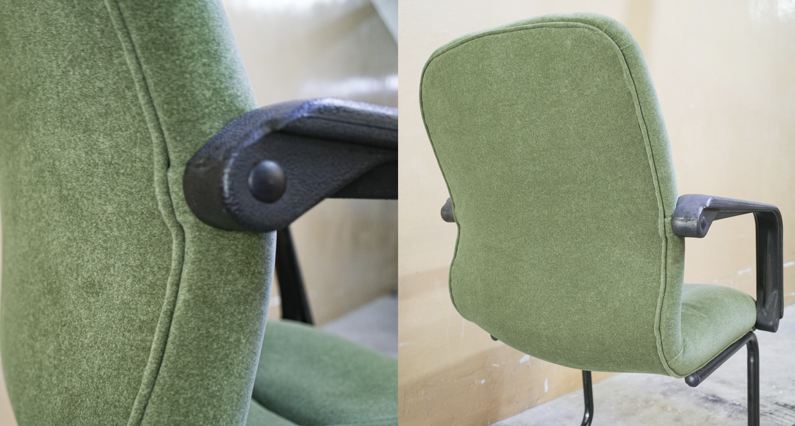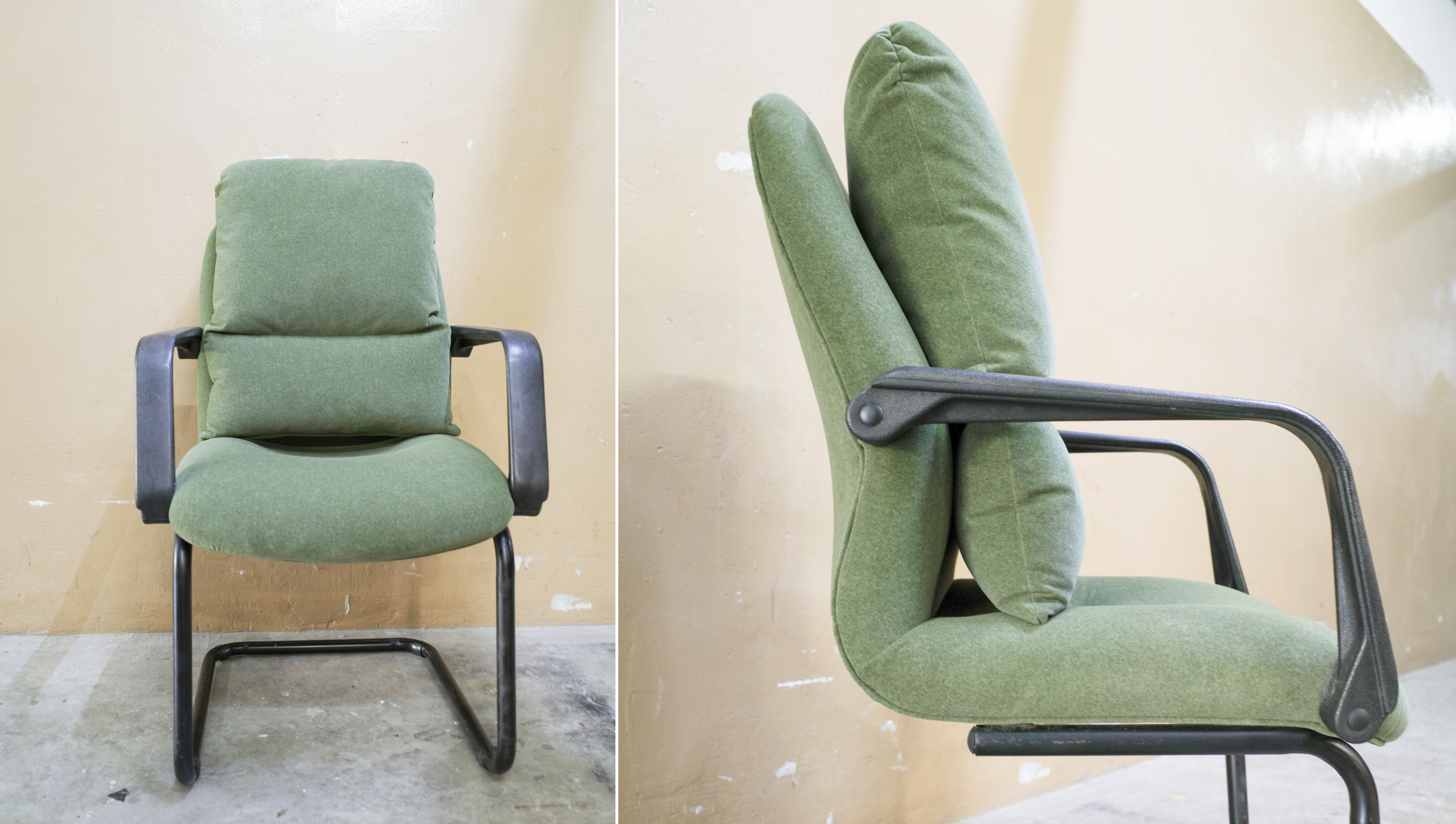 This unremarkable looking chair wasn’t just any office chair. It had been with its owner for years, serving an alternative to her wheelchair. It was her daily partner and it bore the marks of years of service: fabric splitting at the seat, a makeshift arrangement of cushions tied with string to fit her unique needs, and perhaps even a faint aroma of time itself.